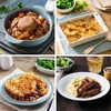 Chicken & Mushroom Hotpot (270g): British chicken pieces with mushrooms in a creamy white wine sauce, topped with sliced potatoes.