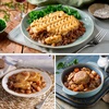 Minced Beef Hotpot(270g): British minced beef, carrots and peas in a rich gravy topped with sliced potatoes.