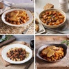Vegetable & Lentil Hotpot (270g): Cannellini beans, root veg, sweetcorn and lentils in a rich tomato sauce topped with sliced potatoes.